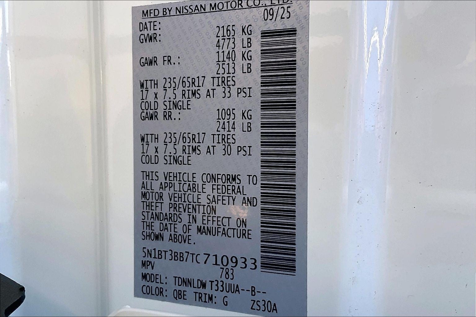 - Rear Tire Size: P235/65HR17