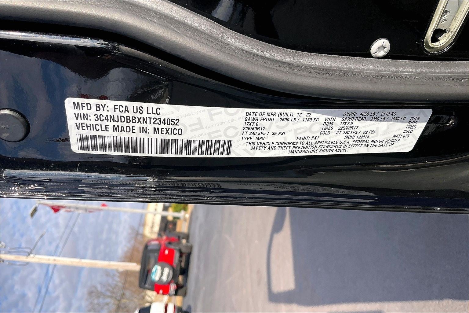 ENGINE: 2.4L I4 ZERO EVAP M-AIR W/ESS, TRANSMISSION: 9-SPEED 948TE AUTOMATIC, QUICK ORDER PACKAGE 2GJ, DIAMOND BLACK CRYSTAL PEARLCOAT, BLACK, PREMIUM CLOTH/VINYL BUCKET SEATS