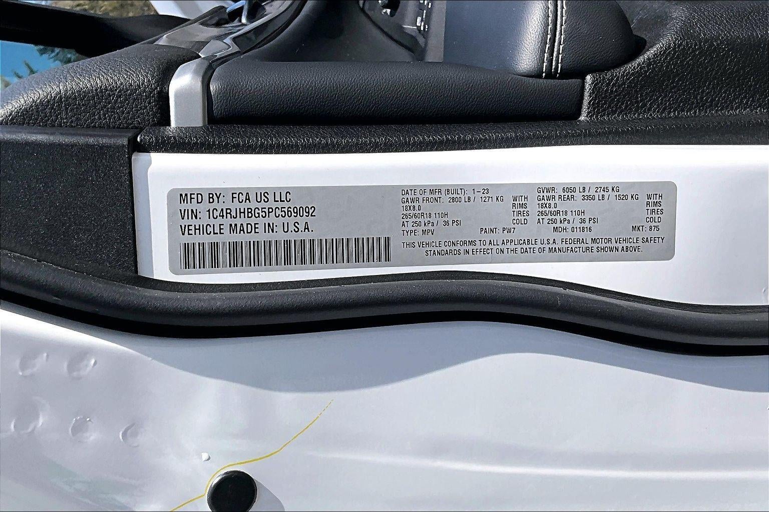 ENGINE: 3.6L V6 24V VVT UPG I W/ESS, TRANSMISSION: 8-SPEED AUTOMATIC 8HP50, QUICK ORDER PACKAGE 23E, WHEELS: 18"" X 8"" FULLY PAINTED ALUMINUM, TIRES: 265/60R18 BSW A/S LRR, BRIGHT WHITE CLEARCOAT, GLOBAL BLACK, CAPRI LEATHERETTE SEATS, DUAL-PANE PANORAMIC SUNROOF