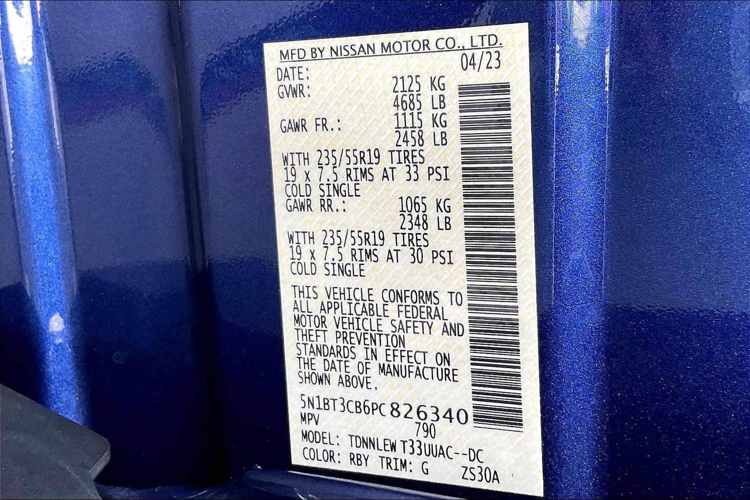 - Tires: 235/55R19 All Season
